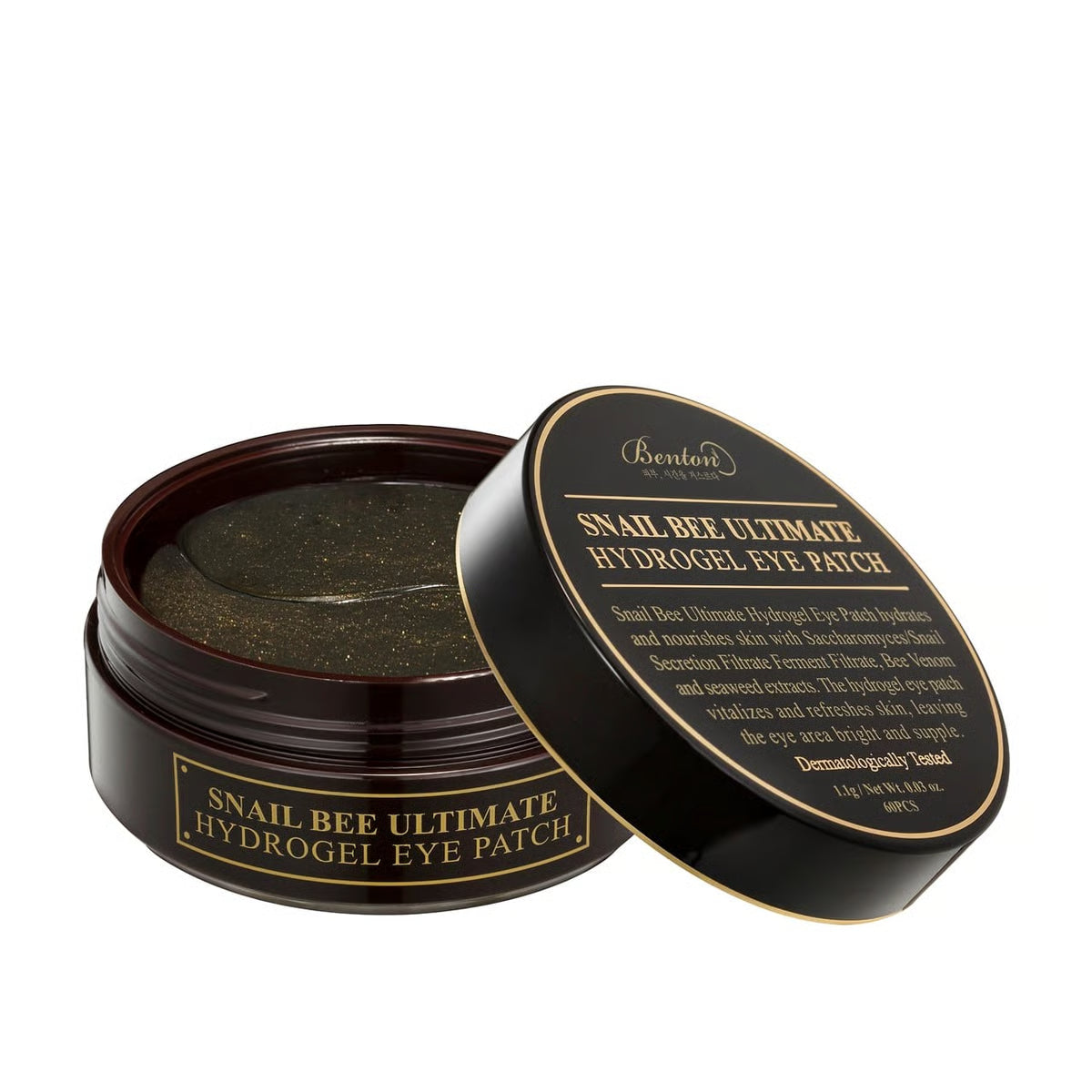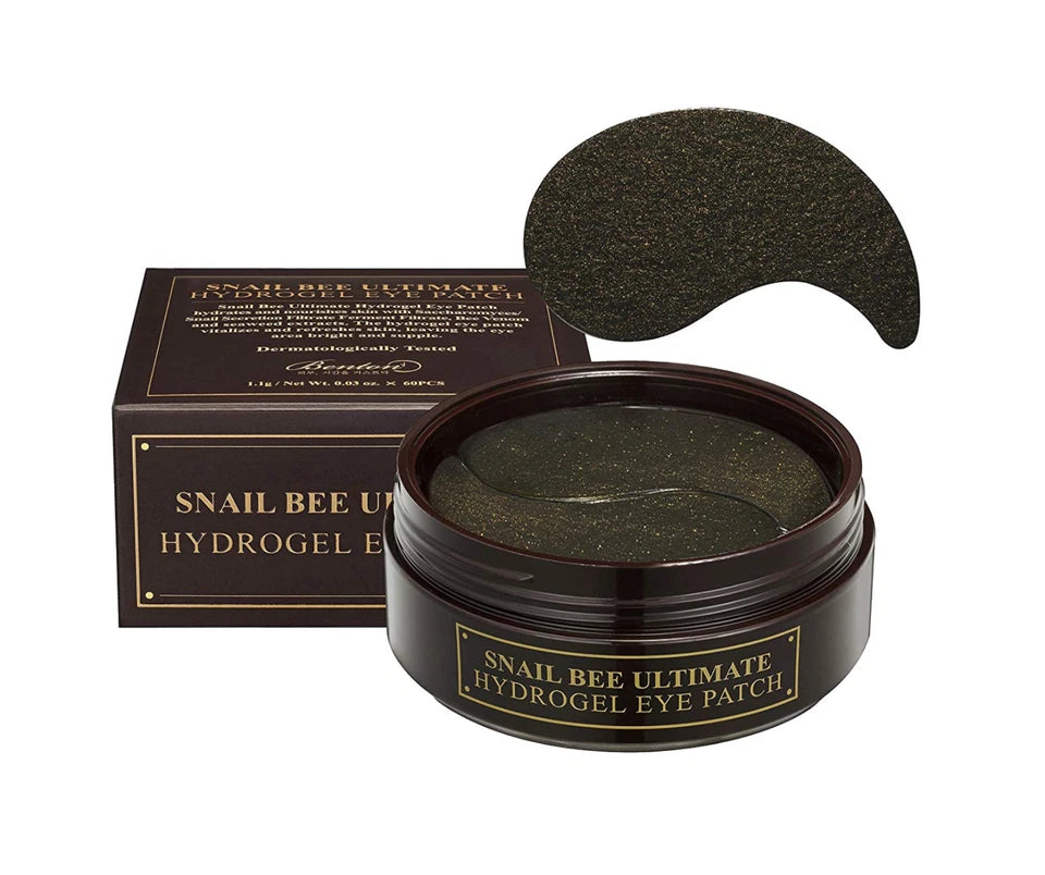 Benton Snail Bee Ultimate Hydrogel Eye Patches instantly hydrate, brighten, and soothe tired under-eyes. Formulated with snail mucin, bee venom, niacinamide, hyaluronic acid, and tea tree water, they reduce puffiness, dark circles, and fine lines while calming irritated skin. Suitable for all skin types, including sensitive.