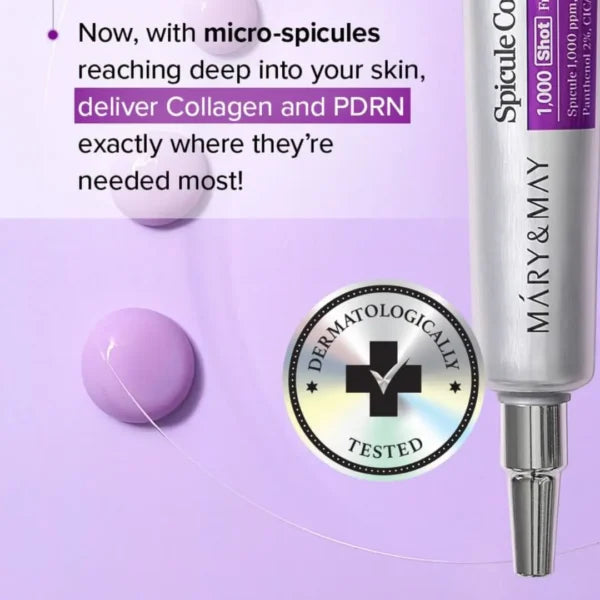 Mary & May Spicule Collagen PDRN Cream is a rejuvenating treatment cream formulated with 1,000 ppm of marine-derived micro-spicules that are smaller than pores, allowing deeper penetration to help refine texture, smooth fine lines, and visibly tighten pores. Enriched with premium French marine collagen, it boosts elasticity, supports firming, and strengthens the skin barrier.