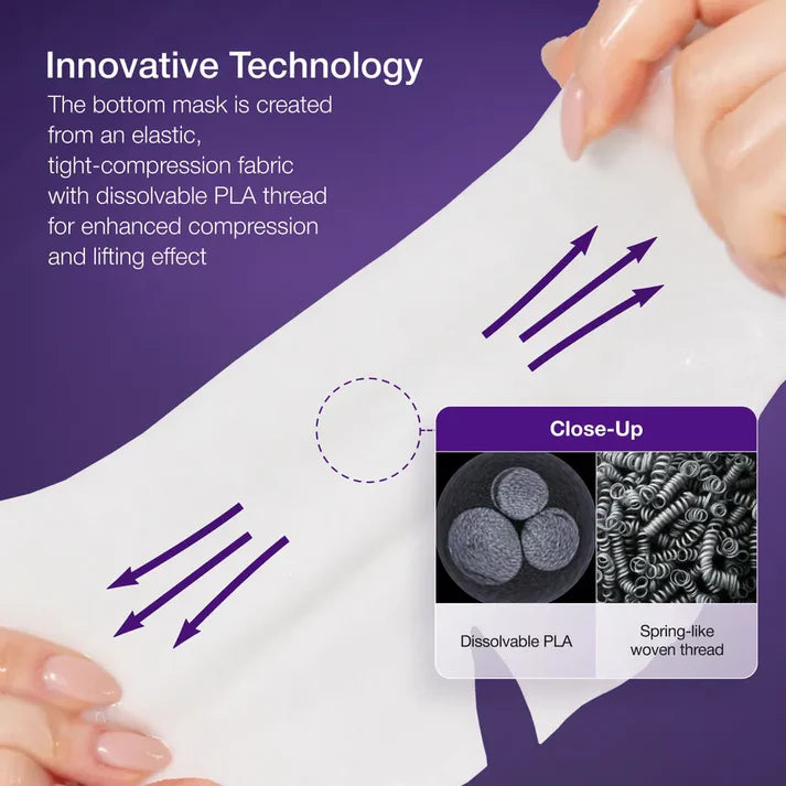 - [FIRMING SHEET MASK] A firming sheet mask featuring a top and bottom section: the top mask contains NAD+ BIO capsules, while the bottom mask is infused with dissolvable PLA threads, that helps enhance defined jawline and gives radiant, plump skin. The additional lifting band further enhances the lifting effect by tightening and sculpting the face for aging, dull skin.