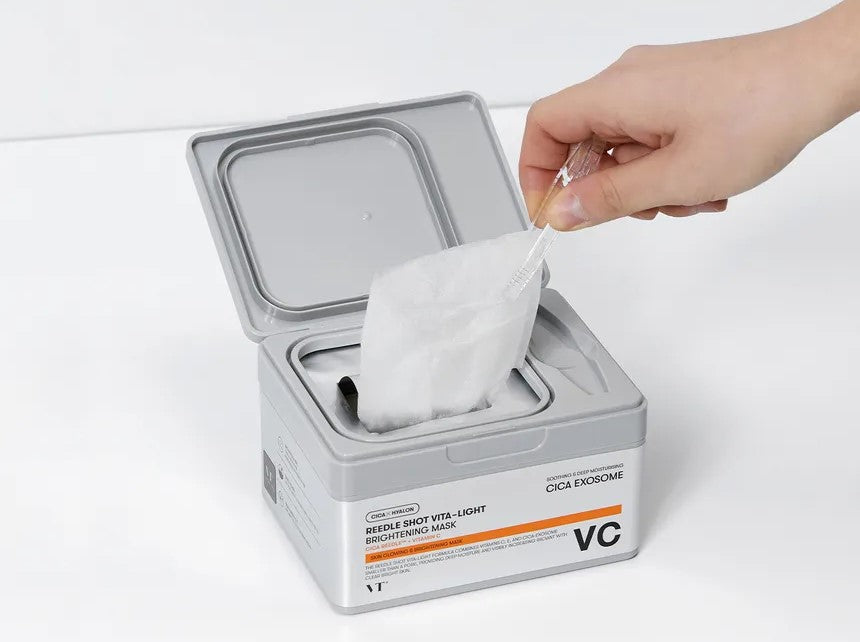 A popular addition to VT’s Reedle Shot Vita-light series, this multi-vitamin mask is supercharged with Vitamin C to brighten skin, Vitamin E to boost hydration and 1000ppm niacinamide (Vitamin B3) to improve skin elasticity! Trademarked ingredient MELAZERO®V2 (with loquat tree extract and spearmint extract) further evens out hyperpigmentation and blemishes, while centella asiatica extract synergizes with glutathione and triple hyaluronic acids to give skin a nourished, dewy glow. The brand’s patented Cica ReedleTM technology gently exfoliates clogged pores, ensuring that active ingredients deeply penetrate and soak into skin. Made from eco-friendly Tencel fabric, the masks adhere smoothly to skin and can be obtained one at a time from the sanitary packaging using tweezers.
